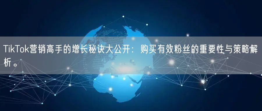 随着TikTok在全球范围内的普及,越来越多的企业和个人开始利用这一平台开展营销活动。然而,在竞争激烈的TikTok舞台上,如何快速增长并吸引有效粉丝,成为了一个关键的挑战。本文将深入探讨购买有效粉丝在TikTok营销中的重要性,并解析相关策略。