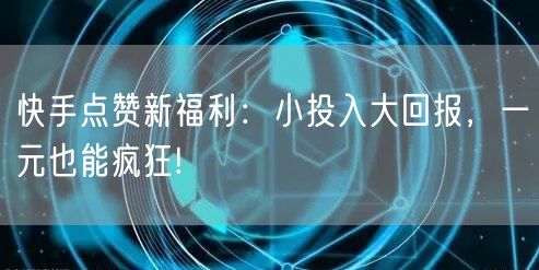 近年来,随着互联网的普及和社交媒体的兴起,快手作为一款备受欢迎的短视频社交平台,吸引了众多用户的加入。为了回馈广大用户,快手不断推出各种福利活动。今天,我们将为大家带来一个全新的点赞福利活动——小投入大回报,一元也能疯狂!